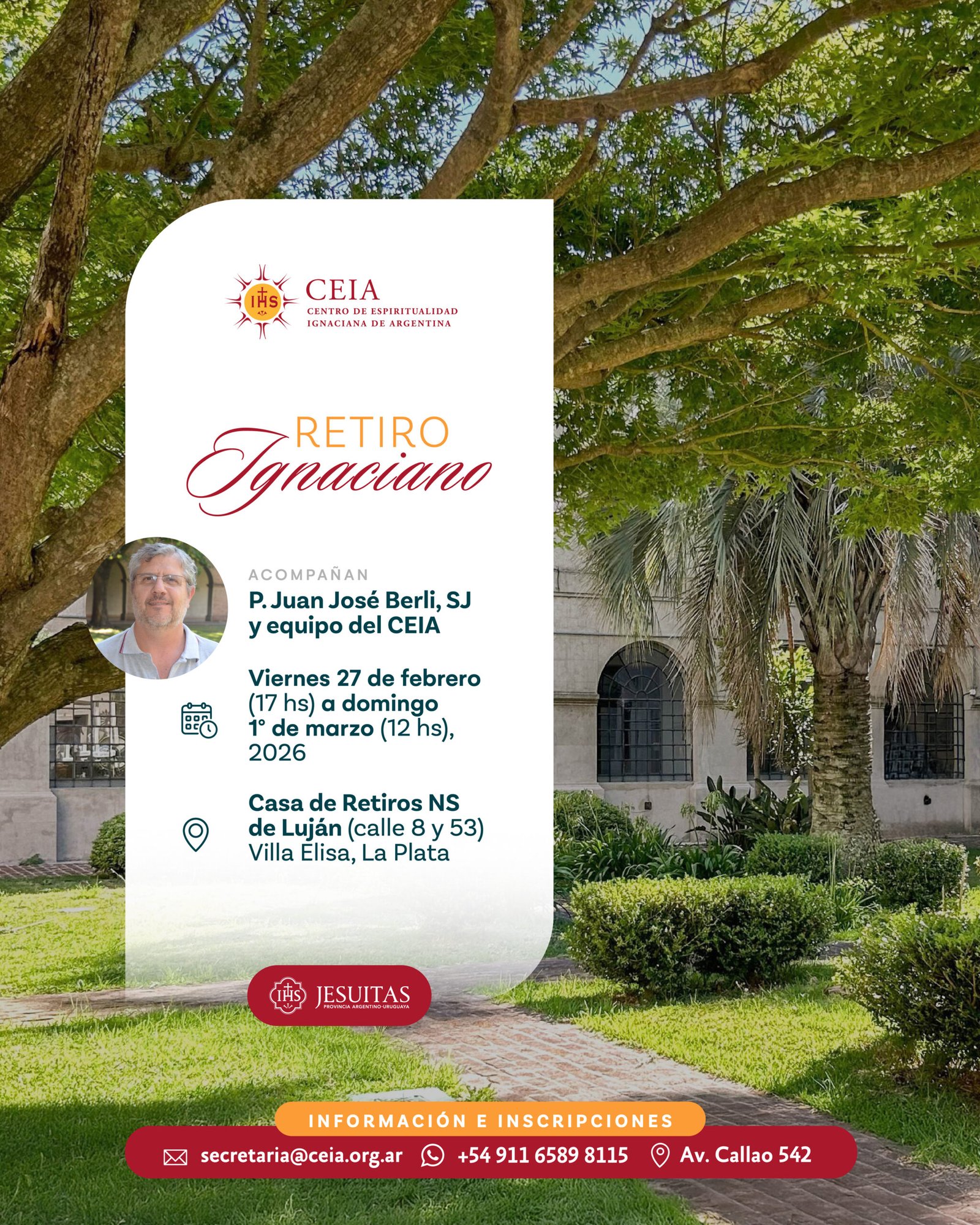 RETIRO IGNACIANO Ofrecemos un fin de semana para rezar al estilo ignaciano el año que comienza, bajo la guía del P. Juan José Berli, SJ y equipo del CEIA. El...