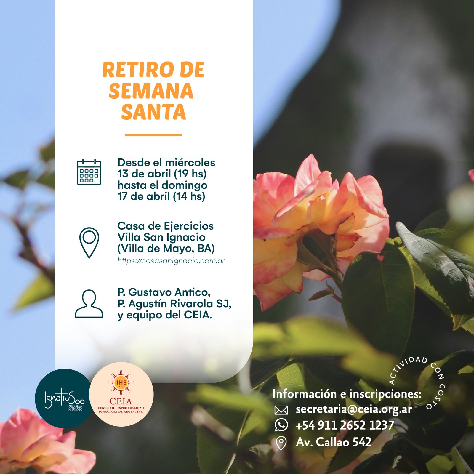Un año dedicado a recorrer el conocido trayecto de oración diseñado por San Ignacio de Loyola, los Ejercicios Espirituales, en un formato combinado con nuestras responsabilidades habituales, sin necesidad de «retirarme» a otro lugar que no sea mi casa. Guían: Agustín Rivarola sj y Equipo CEIA Duración de la experiencia: desde el sábado 2 de...